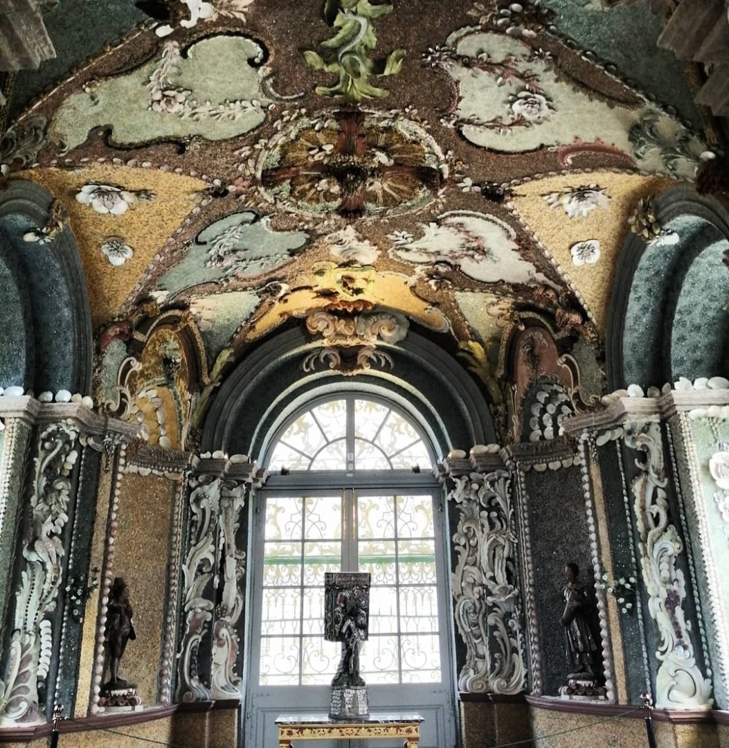 Убранство Грота выполнено полностью из ракушек разных видов. Честно говоря, фото не передает той красоты, которая есть внутри. Это тонкая, точная ювелирная работа. Двадцать лет ушло на оформление убранства!