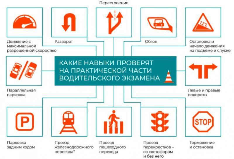 Навыки, которыми должен обладать кандидат в автомобилисты, остались прежними — всего их около 20-ти. Это, в частности, разворот, перестроение, обгон, левые и правые повороты, проезд перекрёстков регулируемых и нерегулируемых.