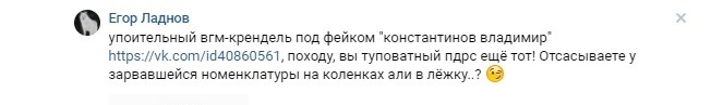 ?t=38Вам, зомбированным овощам, мозг запудрили до такой степени, что самостоятельно думать вы уже не способны-только повторять, как попугаи, либерастическую чушь. У вас в ходу 4-5 типовых фраз из Методички " ТЫ-КРЕМЛЕБОТ! ТЫ ЛИЖЕШЬ.. ОПУ ВЛАСТИ! ПРИГОЖИНСКИЙ ТРОЛЛЬ! СКОЛЬКО ТЕБЕ ПЛАТЯТ?! ПУТИНСКИЙ РЕЖИМ ГИБНЕТ!» Методичку обновляйте хоть ИНОГДА! И вы хотите, чтобы народ пошел за вами с вашей бредятиной?