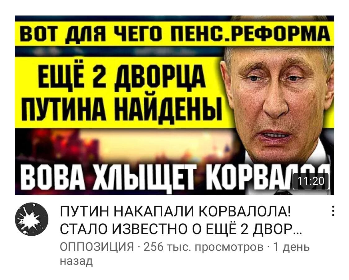 Поколение тик-ток, 5 сек оперативки, на остальное не хватает ресурсов. Весь проект Навального только на хомячков и дебилов рассчитан. Первое шоковое впечатление прошло. Начинаются разборки. Вернее уже завершаются. И только неподготовленные тролли еще пытаются оперировать ссылками на фейковый фильм Навального)).