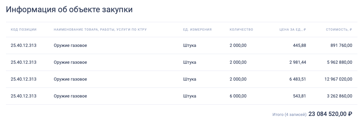 А знаете ли вы, что Росгвардия закупит 12 тысяч перцовых баллончиков более чем на 23 миллиона рублей? Именно такая заявка была подана на сайт госзакупок 12 апреля 2021 года.
