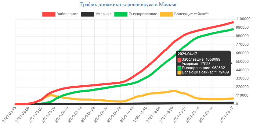 На сегодня, 17.04.2021, в Москве всего зарегистрировано: