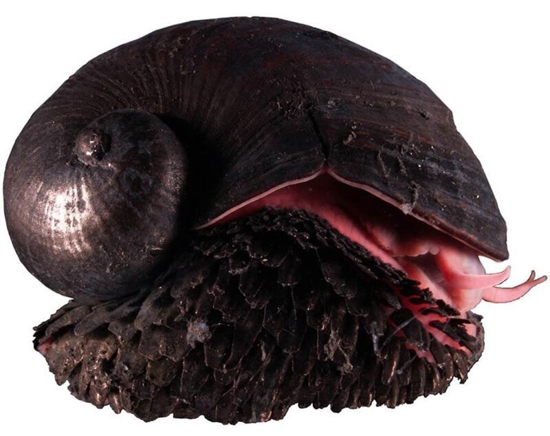 Эта удивительная железная улитка была обнаружена в Индийском океане в 2001 году. Ее нашли на глубине 2500 метров, где из разлома хлещет серная кислота, температура достигает 400 градусов Цельсия, а давление составляет 100 атмосфер.