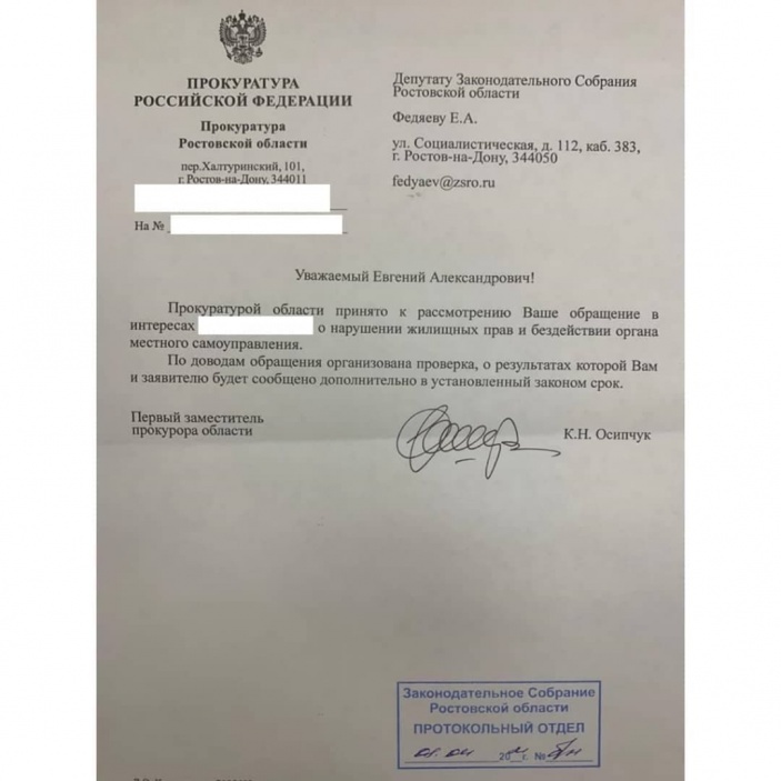 Обративший внимание на проблему Жариковой областной депутат Федяев обвинил ростовские власти в том, что чиновники «просто забыли» 89-летнюю женщину в аварийном доме. Он заявил, что обратился в прокуратуру, чтобы привлечь сотрудников администрации к ответственности за халатность.