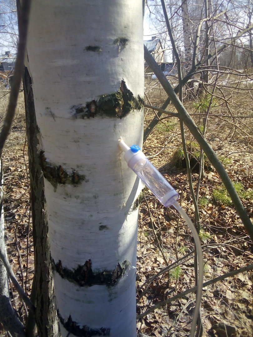 В начале марта месяца я написал статью под названием "Весна! А значит скоро, за берёзовым соком!" (ссылку оставлю внизу) , там есть полная инструкция с фото, как изобрести "приблуду" для сбора сока.