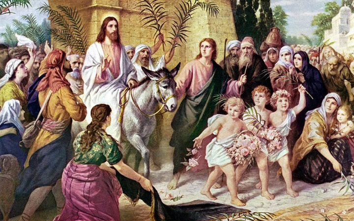 Евангелие повествует о том, как Иисус в сопровождении верных учеников торжественно въезжает в Иерусалим не на породистом скакуне, а на молодом осле. На благородном животном, особенно почитаемым иудеями в древние века, за пригодность не в военных, а в домашних делах. Народ Иерусалима, уставший от притеснения Рима и наслышанный о чудесах, совершаемых Иисусом, восторженно встречал Мессию – помазанника Божьего, явившегося для уничтожения зла и спасения человечества.