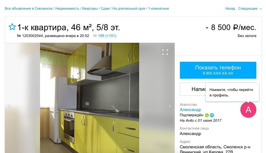 Обманные сделки купли-продажи с квартирами на Авито встречаются не очень часто, ведь процесс оформления сопровождается полной проверкой документов на недвижимость – как в государственных структурах у юристов и нотариусов, так и в банках при выдаче кредита на жилье. Мошенники используют объявления о продаже квартир для получения предоплаты. Как и в случае с автомобилями, такие объявления содержат минимум информации. Их отличия: на фото квартира выглядит очень аккуратно, обставлена достаточно новой мебелью; цена недвижимости значительно отличается от рыночной – обычно на 30-40%; упоминание о возможности связаться с продавцом исключительно через электронную почту или телефонный номер иностранного оператора. Продавец не предоставляет точный адрес жилья и, ссылаясь на срочность продажи и свое нахождение в другом регионе или за границей, просит выслать существенную предоплату – от 10 тысяч долларов, на банковскую карту или через систему платежей «Money Gram» либо «Western Union» и переслать подтверждающий операцию скан квитанции. Получив код перевода, мошенник обналичивает средства. Оформляйте предоплату за квартиру только после детальной проверки документов и личного осмотра недвижимости. Договор залога необходимо составлять у нотариуса! На объявления об аренде квартир приходится наибольшая часть мошенничества с недвижимостью. Самый распространенный вариант – размещение объявления сдаче квартиры псевдо-риэлтерской контрой. Вам предложат заключить договор на предоставление услуг по подбору жилья с определенной фиксированной платой – от 2000 рублей до 100% стоимости месячной аренды. В дальнейшем окажется, что квартира, которая подходила вам по цене, уже сдана, и есть только более дорогие варианты. В худшем случае после получения денег мошенники будут отказываться от встреч под различными предлогами или перестанут выходить на связь. В случае сдачи жилья без посредников есть риск стать одним из многих арендаторов одной и той же квартиры, заплатив деньги ее «хозяину». Чтобы обезопасить себя от мошенников: заключайте официальный договор найма; проверяйте документы на недвижимость; удостоверьтесь, что квартира действительно принадлежит лицу, представившемуся владельцем, либо у него есть официальная доверенность от хозяина жилья. Будьте осторожны, если в объявлении о сдаче квартиры указана нереально низкая цена или у вас просят предоплату перед осмотром недвижимости – в 99% случаев вы столкнулись с мошенниками!