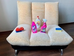 Если нет возможности купить готовые средства для химчистки мебели, можно воспользоваться такими общедоступными веществами, как соль, сода, тальк или мел. Все они хорошо убирают свежие загрязнения. Соль эффективна для пятен вина, тальк и мел – для жира, сода к тому же убирает запахи. Достаточно нанести их на обивку примерно на час и потом удалить пылесосом.