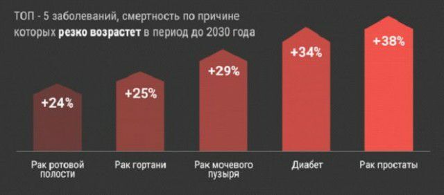 В топе также рак трахеи, бронхов и легких, болезнь Альцгеймера, кишечные инфекции, диабет и болезни почек.