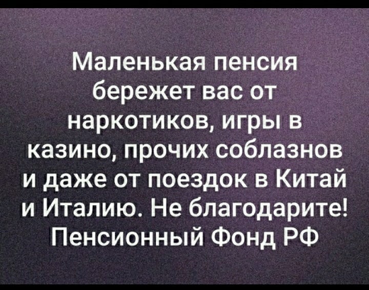 В перечень стран, где отсутствует пенсия, пора вносить Россию. Потому что у нас ЭТО не пенсии, а слёзы