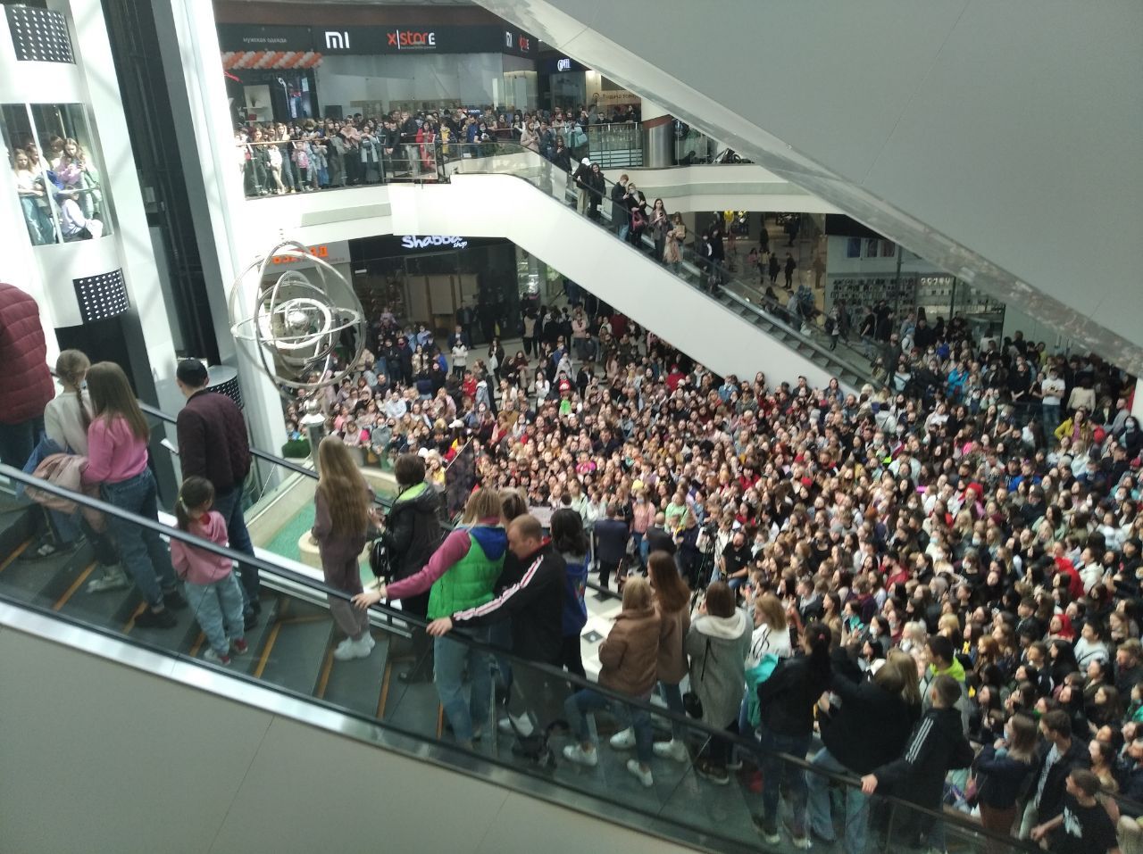 Горожанам пришлось подождать звезду, потому что по пути к ТЦ она встала в пробку. В это время в Galaxy уже было не протолкнуться.