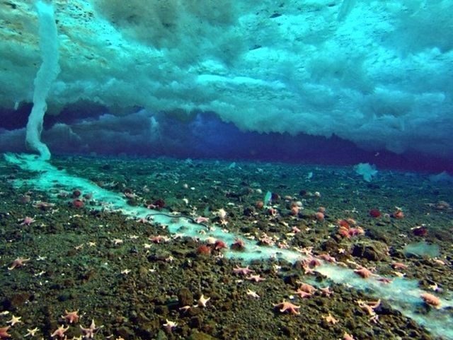 Соль из ледников устремляется узкими потоками ко дну, замораживая морскую воду вокруг себя, образуя сосульку, напоминающую сталактит. Всё, к чему прикасается брайникл — погибает в считанные минуты.