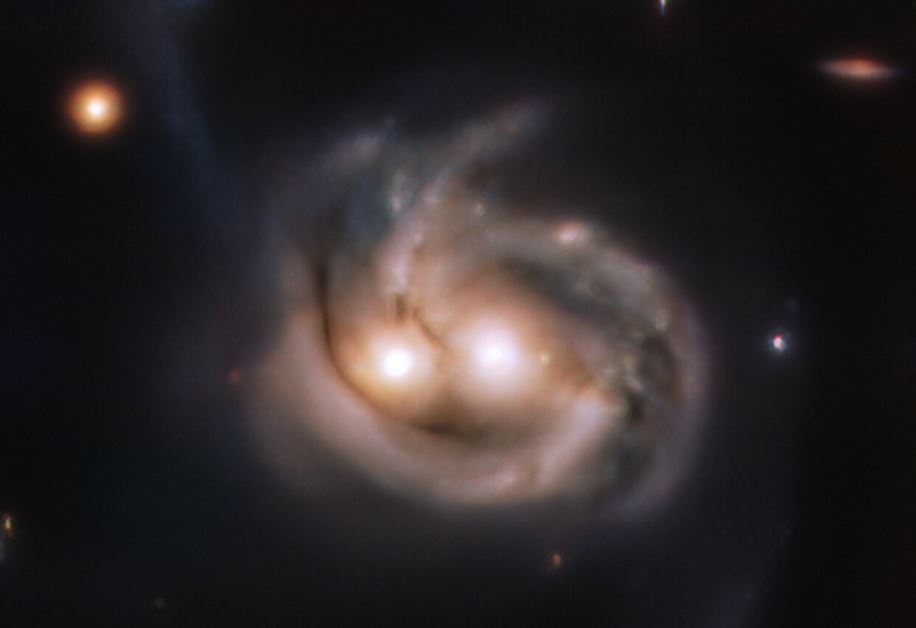 — У вас никогда не возникало ощущения, что за вами наблюдают? Новое изображение галактик напомнило нам смайлик: два глаза и расплывающаяся улыбка. Кстати, за галактиками скрываются две растущие сверхмассивные чёрные дыры, — рассказали астрономы ESO.