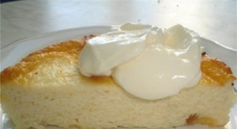 Смазать форму и, на выбор, посыпать дно и бортики панировочными сухарями или той же манкой. Выложить смешанную массу в форму, разровнять и смазать сверху сметаной.
