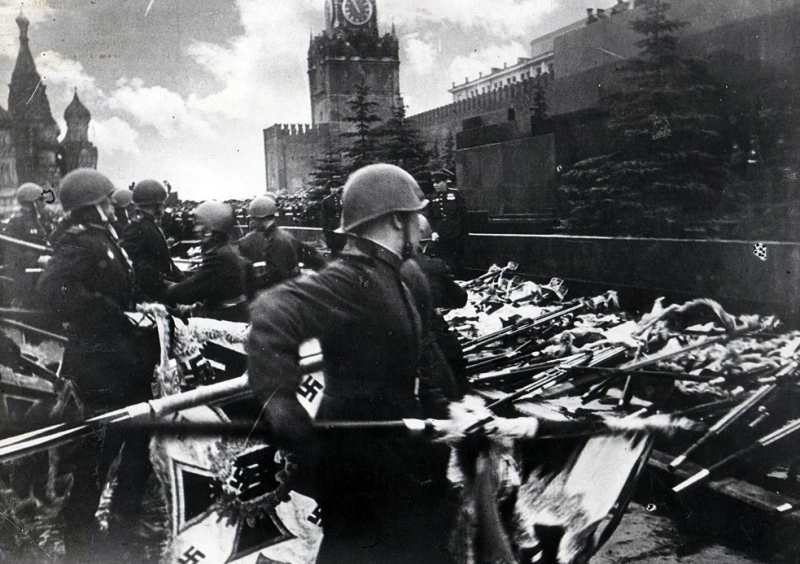 После признания Фонда борьбы с коррупцией экстремистской организацией Минобороны приняло решение внести изменения в традиционную программу бросания знамён нацистских войсковых соединений к подножью Мавзолея. В этом году вместе с ними на землю будут брошены флаги запрещённых экстремистских организаций, таких как ИА «Медуза», ФБК** и Штабы Навального**.