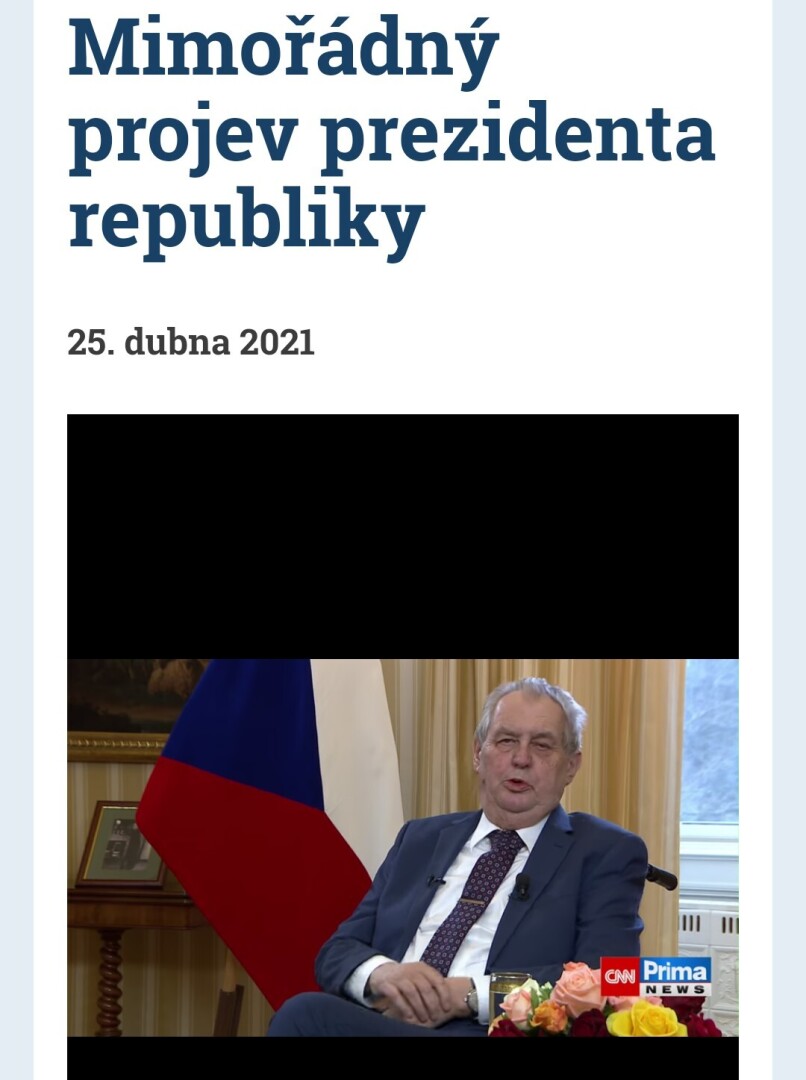 Воскресное обращение Милоша Земана. Скриншот сайта президента Чехии