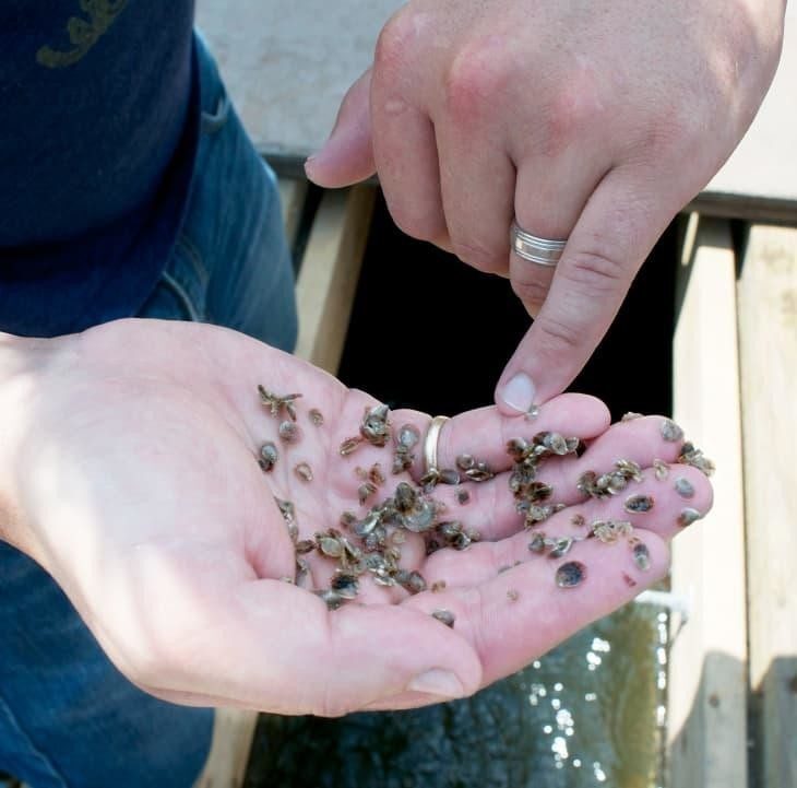 Из икры, на протяжении двух лет выращивают моллюсков, а затем начинается этап «затравливания»