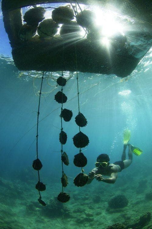 Практически тот же принцип работы наблюдается на фермах по производству устриц и мидий. Разве что подсадок не делают...
