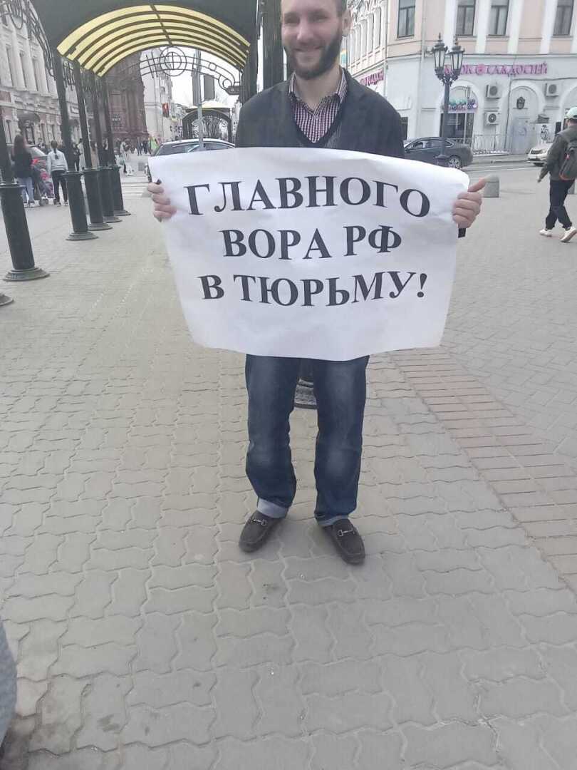 Шутка шуткой, но захотелось проверить реакцию населения и полиции на подобного рода акцию, провести своего рода социальный эксперимент. Я сделал плакат – «Главного вора РФ в тюрьму!» и вышел с ним на нашу центральную пешеходную улицу города-им. Баумана, аналог московского Арбата.