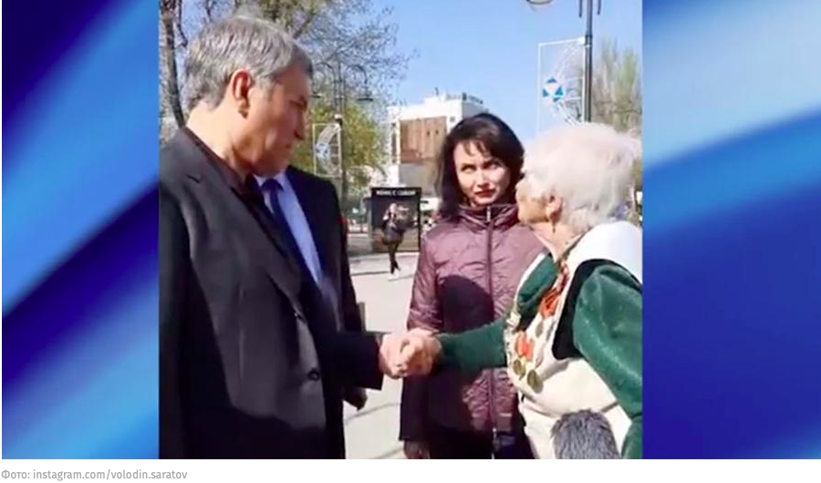 А знаете ли вы, что вчера, 30 апреля, спикер Госдумы России Вячеслав Володин прогуливался по Саратову и встретил 90-летнюю жительницу города, которая не побоялась вступить с ним в политическую дискуссию, в которой она высказала всю правду о российской действительности ему прямо в глаза (!). Зовут эту пожилую женщину Анна Александровна.