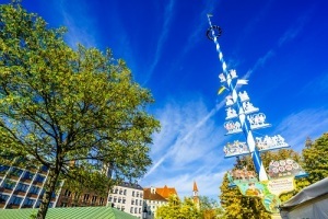 Символом Первомая является Майское дерево (Maibaum). Это высокий ствол с зеленым венком на верхушке, наряженный молодой зеленью и цветами. Венок украшается 7 разноцветными ленточками, чаще всего красными. Майское дерево посвящается земледелию и воскрешению образа Древа мира. Оно олицетворяет жизнь, цветение, весеннее плодородие, здоровье.
