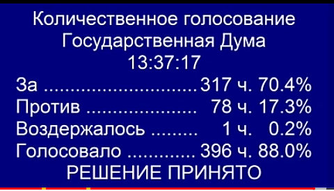 Все партии проголосовали против данного законопроекта, кроме ЕР.