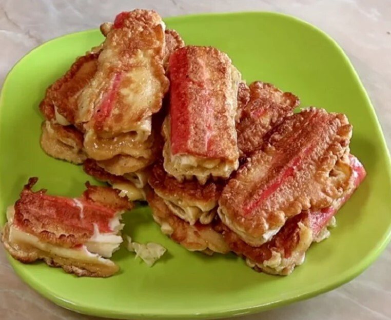 Жарить крабовые палочки лучше в небольшом количестве масла, подливая его при необходимости. Обжаривать с двух сторон до румяной корочки. В среднем процесс обжаривания занимает около 2 – 3 минут.