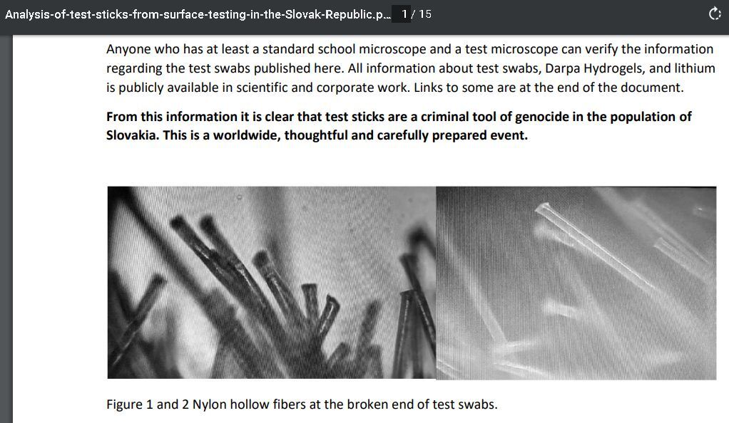 В отчете также говорится: «Из этой информации ясно, что тестовые палочки являются преступным инструментом геноцида среди населения Словакии.