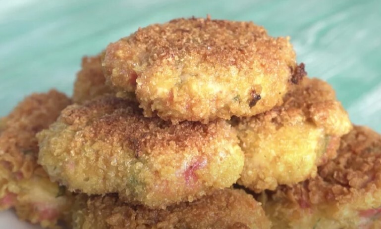 В отдельной миске взбить яйцо. Из приготовленной массы следует сформовать небольшие биточки, обвалять каждый в панировке, затем – во взбитом яйце, и снова – в панировке, и сразу же обжарить их на разогретом растительном масле со всех сторон до румяной корочки. Процесс обжаривания занимает около 2-х минут с каждой стороны.