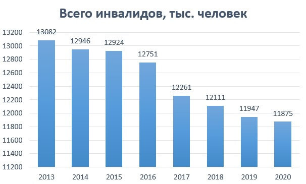 По данным Росстата в стране около 30 миллионов пенсионеров старше 65 лет. Из них около 7 миллионов проживают совершенно одиноко, 50% пенсионеров проживают в супружеском браке. По данным реестра инвалидов в стране 11 миллионов 800 тысяч инвалидов, из них более 7 миллионов в возрасте старше 65 лет.