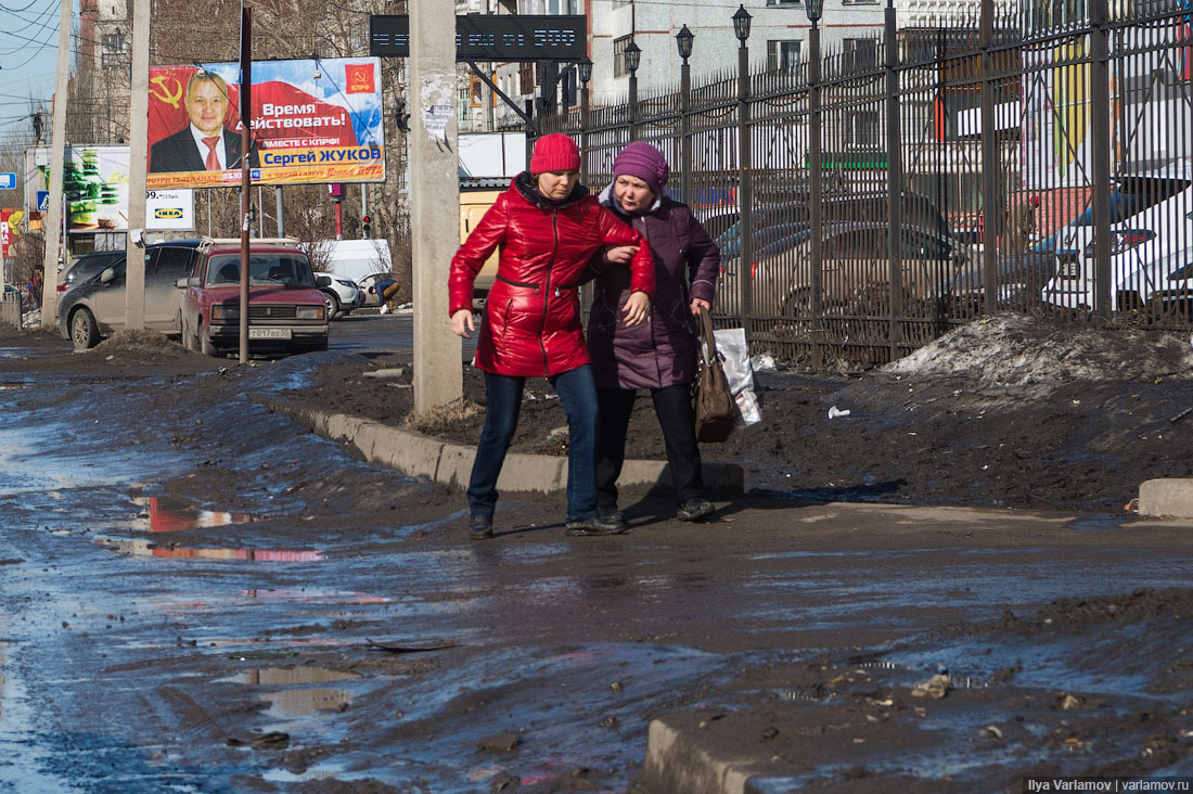 Почти любой город в России становится полосой препятствий, как только выпадают осадки. А в начале весны это зона стихийного бедствия. Вон, в конце марта в Новосибирске внезапно начал таять снег, и город просто превратился в болото. Пришлось даже объявлять режим ЧС в ряде районов.