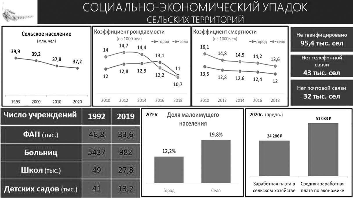 При этом 22% сельского населения находится за чертой бедности. Некоторую картину состояния сельских территорий даёт следующая графика.
