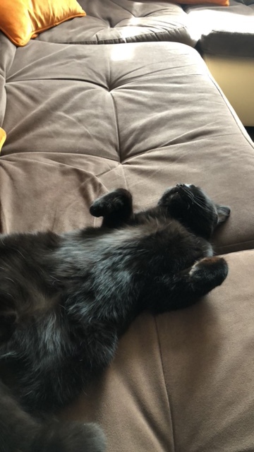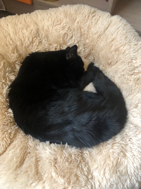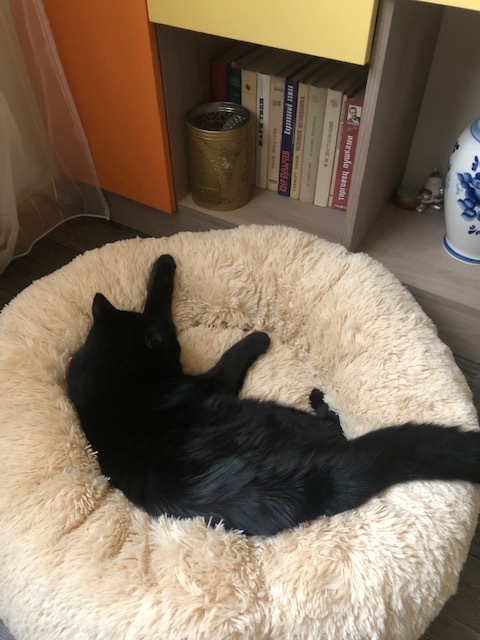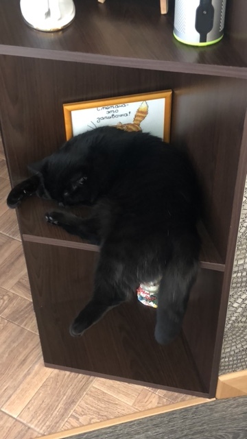 У нашего кота нет определенного места, где он любит спать. Он может спать везде — и на полу, на полках, на своей когтеточке (она с сиденьем сверху), за диваном, на диване — одним словом — везде, где ему захочется. Пару месяцев назад мы купили ему специальную лежанку, мягкую, пушистую, такую няшную. Поначалу он просто ее боялся, даже кошачья мята не помогала, сколько бы его в лежанку не сажала, он сразу оттуда убегал. Не так давно ситуация начала меняться. Сначала он залезал в лежанку передними лапками и жамкал ее внутри, как котята жамкают свою маму во время кормежки. А вчера я положила его внутрь и погладила, и Люц уснул, проспал там больше часа — это было величайшее его достижение.