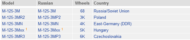 Основание машины (и внутренняя проводка) одинаковы для всех стран Варшавского договора, но для каждой страны был выпущен индивидуальный вариант машины, обозначенный суффиксом к номеру модели (например, M-125-3MR3 для Чехословакии). Это касается компоновки клавиатуры, дополнительной печатающей головки (необязательно) и разводки шифровальных колес в зависимости от страны.