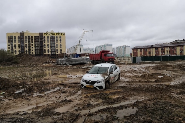 Пользователи социальных сетей обсуждают фотографии из Ярославля, на которых снят увязший в грязи возле стройки на проспекте Фрунзе автомобиль такси. Одни сочувствуют водителю, другие смеются.