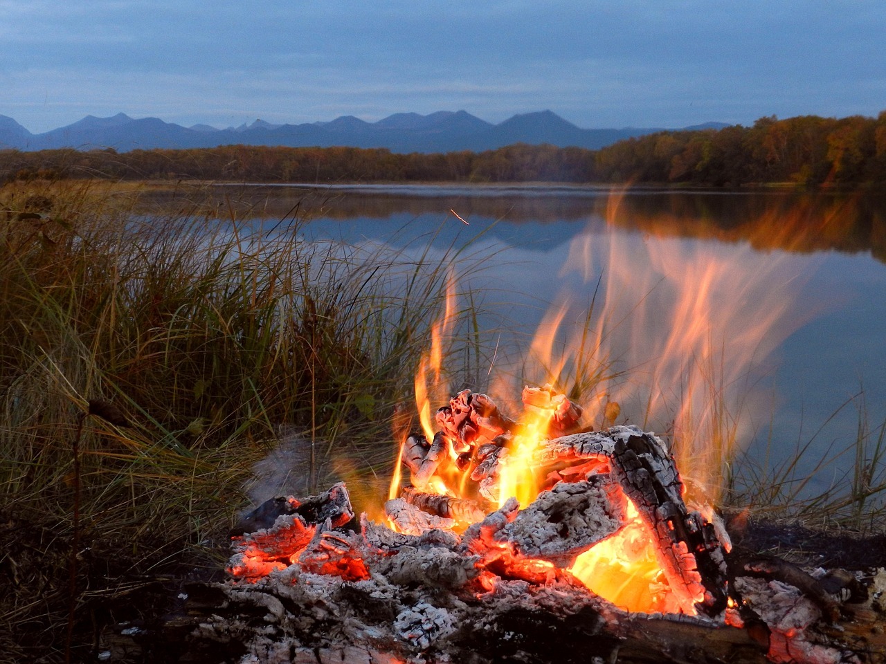 На небольшой полянке развели костер, разбили палатку, собрали дорожный мангал.