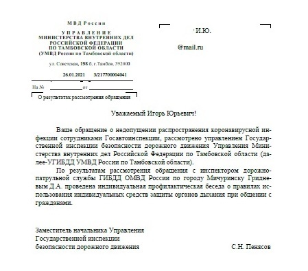 Зам. начальника областной ГИБДД ответил, что работа проведена.