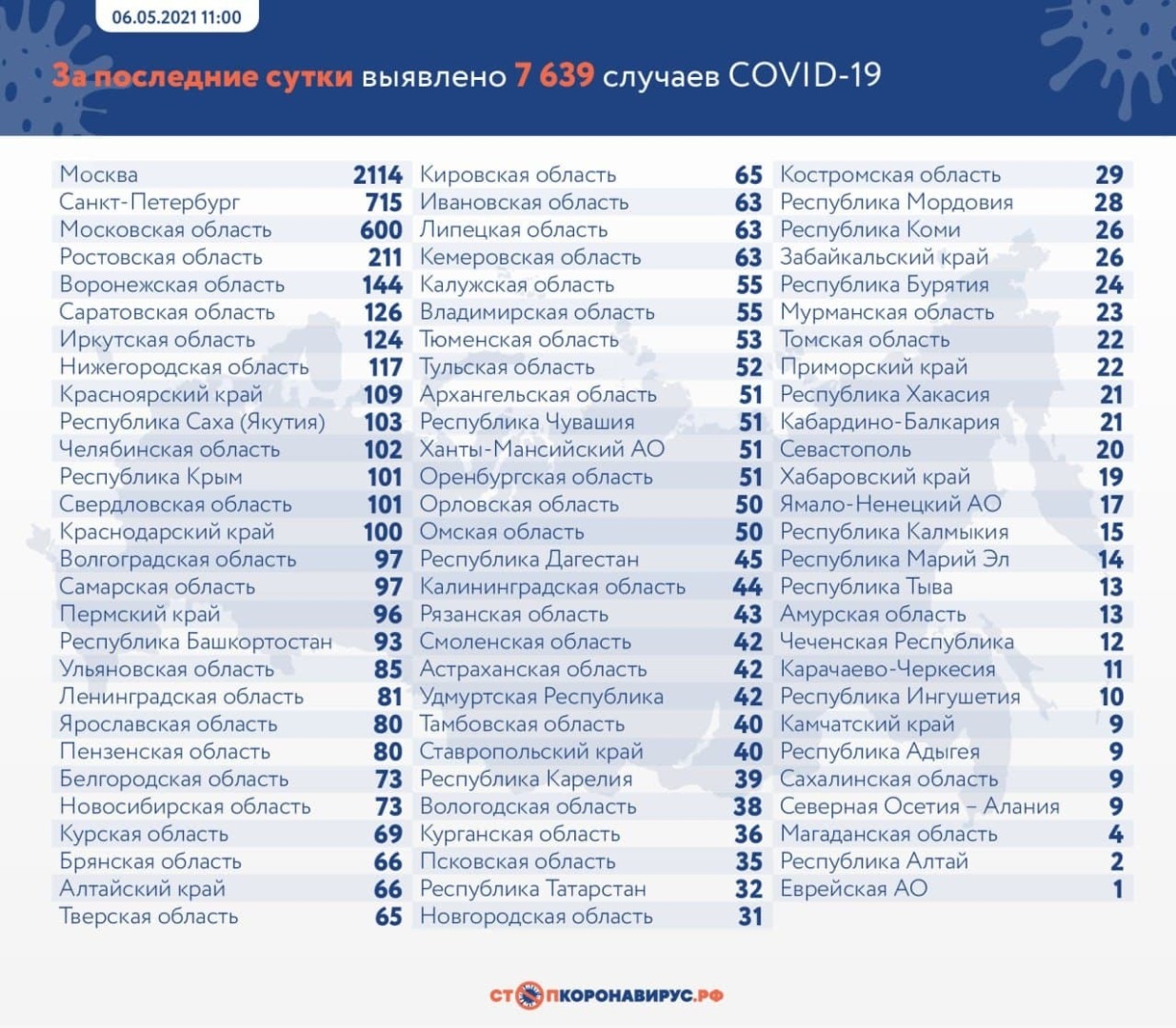 За последние сутки по состоянию на 6 мая 2021 года в России: