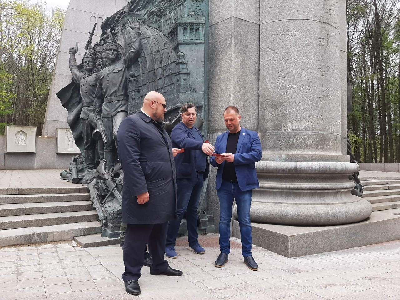 С соблюдением всех мер, направленных на недопущение распространения новой коронавирусной инфекции, добровольцы выдвинулись к памятнику «В борьбе с фашизмом были вместе», где состоялось вручение нагрудных знаков «Доброволец Донбасса», наград ДНР и ЛНР. После добровольцы почтили минутой молчания память погибших товарищей и возложили цветы.