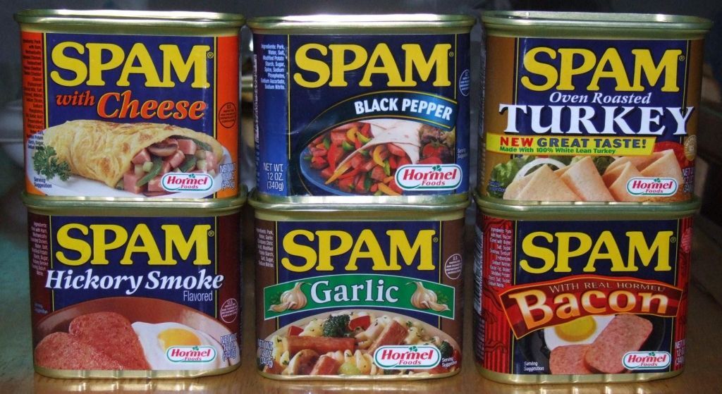 СПАМ происходит от английской аббревиатуры «SPAM», которая появилась в 1937 году. SPAM расшифровывается как «SPiced hAM» (острая ветчина), а также «Shoulder of pork and ham» (свиные лопатки и окорока) и в то время являлось товарным знаком для мясных консервов компании Hormel Foods Corporation.