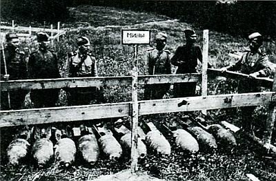Памятник на могиле обшили досками - якобы для сохранности. На самом же деле в его основании таким образом спрятали несколько противотанковых мин. Но это ещё не всё: они аккуратно вырыли под могилой поэта тоннель длиной около 20 метров, набив его фугасами и авиабомбами; последних насчитывалось 10 штук, по 120 килограммов каждая. И этого им показалось мало - ненависть и злоба заставляла оккупантов изощряться в чудовищных фантазиях. Оставленные "в подарок" мины R.Mi.43 оказались незнакомы советским саперам: металлический брусок длиной около 80 см, начиненный пятью килограммами тротила, взрыватели, часть из которых было невозможно извлечь. Некоторые мины были установлены одна над другой: верхняя имела химический взрыватель, срабатывавший через определенное время, а нижняя - механический, чека которого проволокой соединялась с верхней миной. Если бы мины не обнаружили, то они сами собой взорвались бы через некоторое время от химического взрывателя. А если бы обнаружили только верхнюю мину, то, подняв ее, выдернули бы чеку из взрывателя нижней.