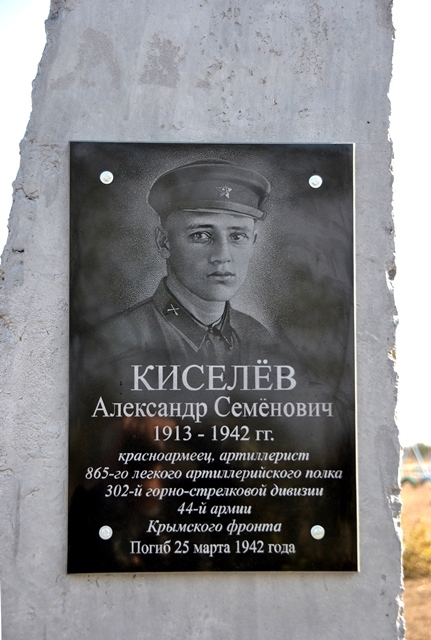 Красноармеец-артиллерист Александр Киселев проходил службу в 865-ом легком артиллерийской полку 302-й горно-стрелковой дивизии 44-й армии Крымского фронта и участвовал в беспрерывных боях по изгнанию немецко-фашистских войск с территории Крымской АССР.