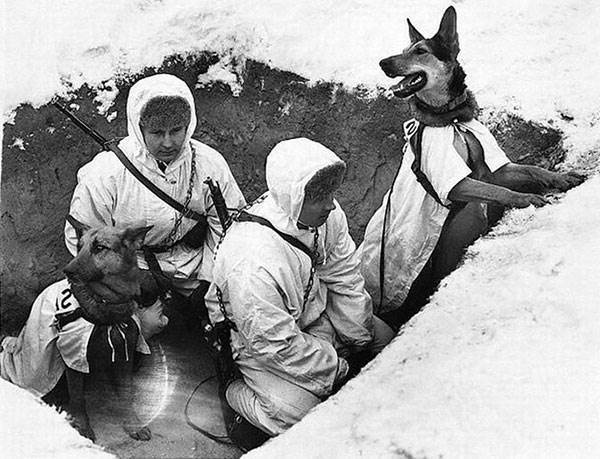 Собаки разведывательной службы сопровождали разведчиков в тыл врага для успешного прохода через его передовые позиции, обнаружения скрытых огневых точек.
