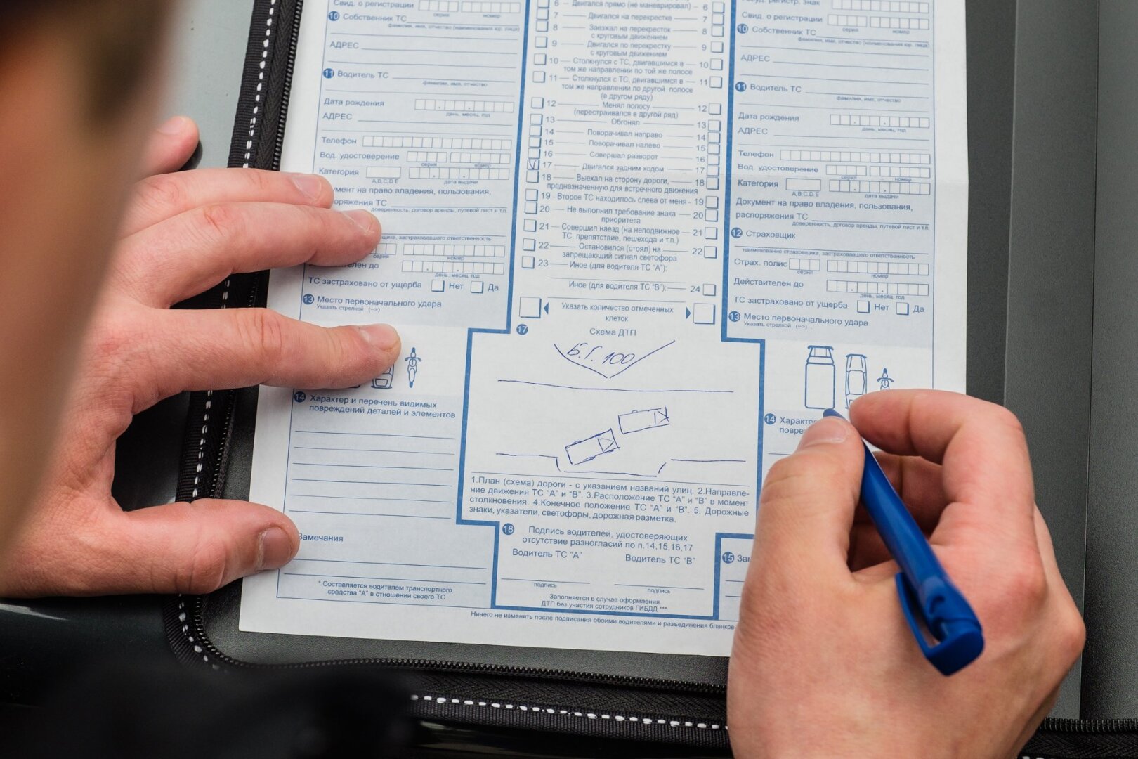 Еще одна ошибка при заполнении европротокола связана с оборотной стороной листа. На первом листке, как правило, все понятно. На обороте участники пишут объяснительные, каждый на своем экземпляре. То есть виновник должен написать свою объяснительную на копии, а не на оригинале. Если он напишет ее на обороте оригинала, это будет ошибкой.