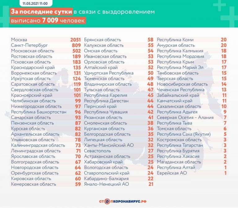Читайте также: Статистика коронавируса: коронавирус 11 мая 2021 года в Москве и мире. Сколько больных сегодня?