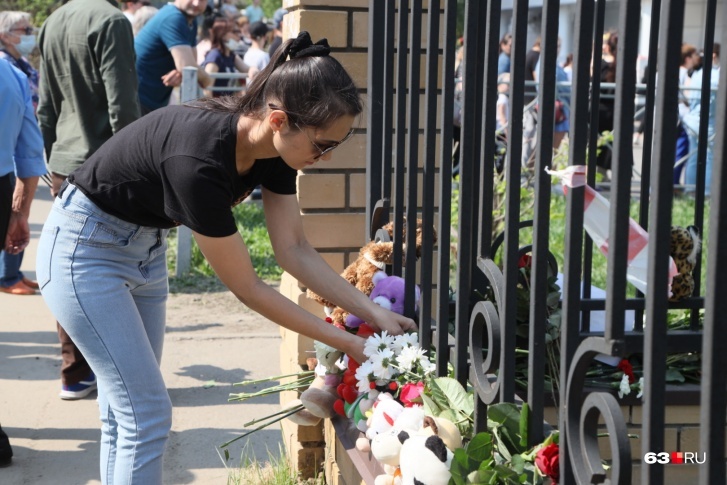К школе, где погибли и пострадали дети, продолжают нести цветы и игрушки