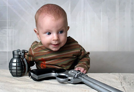Родительская безответственность. Ребенок играет с заряженным оружием. Недопустимо!