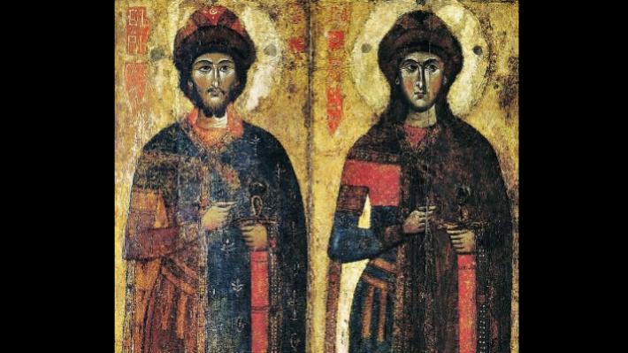 Борис и Глеб были младшими сыновьями князя Владимира Красна Солнышка, сделавшего христианство официальной религией Руси. Они были убиты по приказу своего родного брата Святополка, прозванного Окаянным, после смерти отца в 1015 году. Святополк хотел получить власть над всеми русскими землями, тогда как они были по завещанию распределены между всеми сыновьями Владимира. Так, сам Святополк унаследовал Киевский престол, Ярослав — Новгород, Борис правил Ростовом, а Глеб Муромом. Узнав о братоубийственных завоеваниях Святополка, Ярослав Владимирович собрал войска, выступил против него и одержал победу. После этого он стал великим князем киевским и позднее получил прозвище Мудрый.