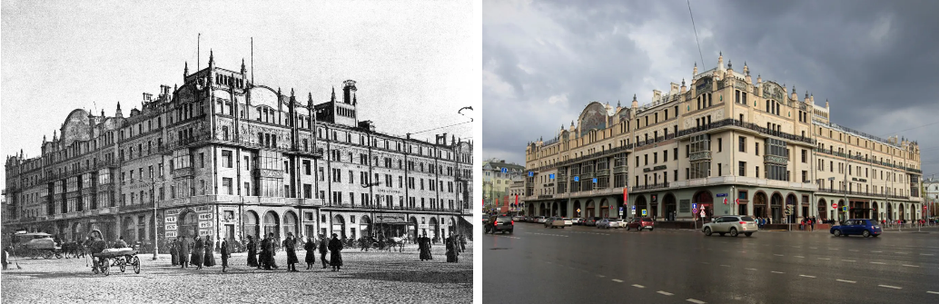 Ровесник ХХ века — отель «Метрополь» в Москве. Величественное здание в стиле модерн с видом на Большой театр появилось по инициативе Саввы Мамонтова. Проект выполнил британец Вильям Валькот. Мамонтов разорился, заказчик сменился, а за ним и десяток архитекторов, но в 1905 году «Метрополь» достроили. Интерьеры по эскизам Виктора Васнецова и Константина Коровина, майоликовые панно, в том числе по картине Михаила Врубеля «Принцесса Грёза», — современники считали отель манифестом нового искусства. Гостиница в историческом центре была обречена на необычную историю. В революцию отель брали штурмом. В уникальных интерьерах выступали Ленин и Троцкий. Здесь останавливались Сергей Прокофьев, Александр Куприн, Бернард Шоу, Марлен Дитрих и Джон Стейнбек.