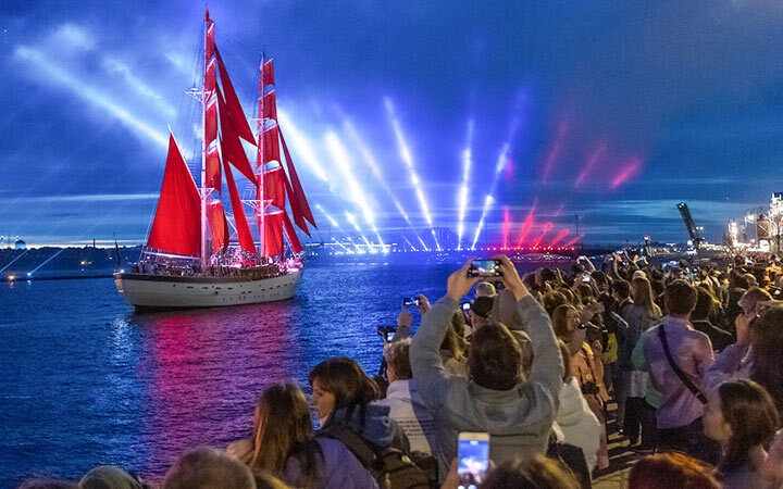 Непосредственными участниками праздника «Алые паруса» становятся выпускники 11-х классов школ. Посмотреть пиротехническое шоу и кульминационный проход фрегата с алыми парусами могут жители и гости северной столицы.